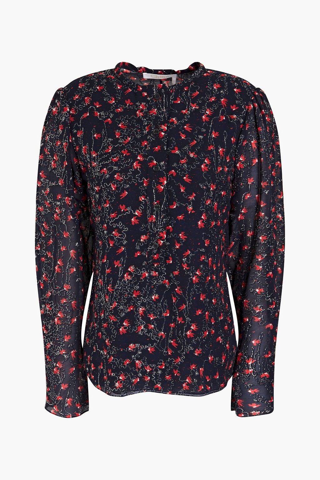 CHLOÉ Embroidered floral-print silk-voile blouse
