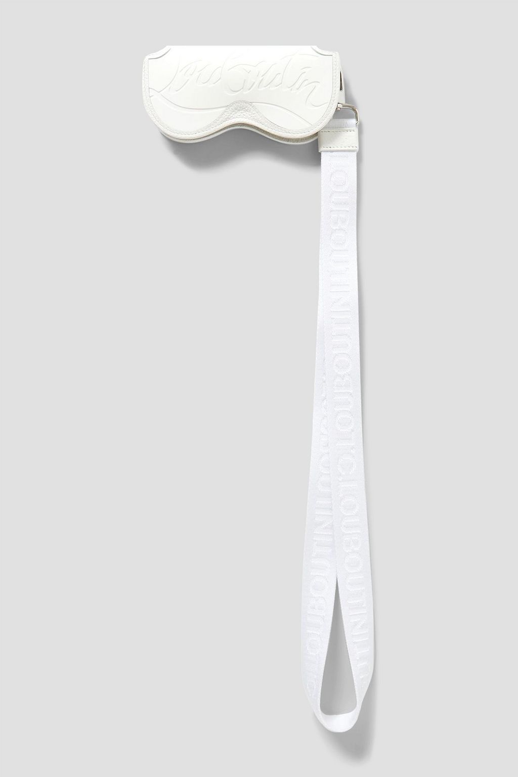 Christian Louboutin's 'Loubinocle' sunglasses case is ideal for traveling, no matter your destination. Detailed with a logo-debossed rubber panel, it's made from sturdy white leather and has a detachable, lanyard-style webbing strap.