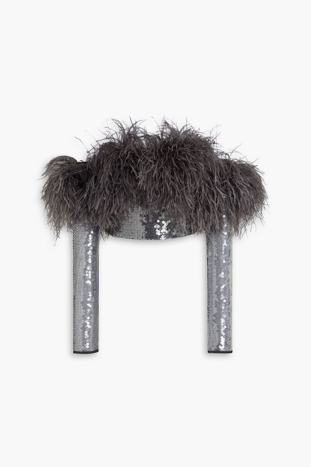 DAVID KOMA Off-the-shoulder cropped embellished tulle top