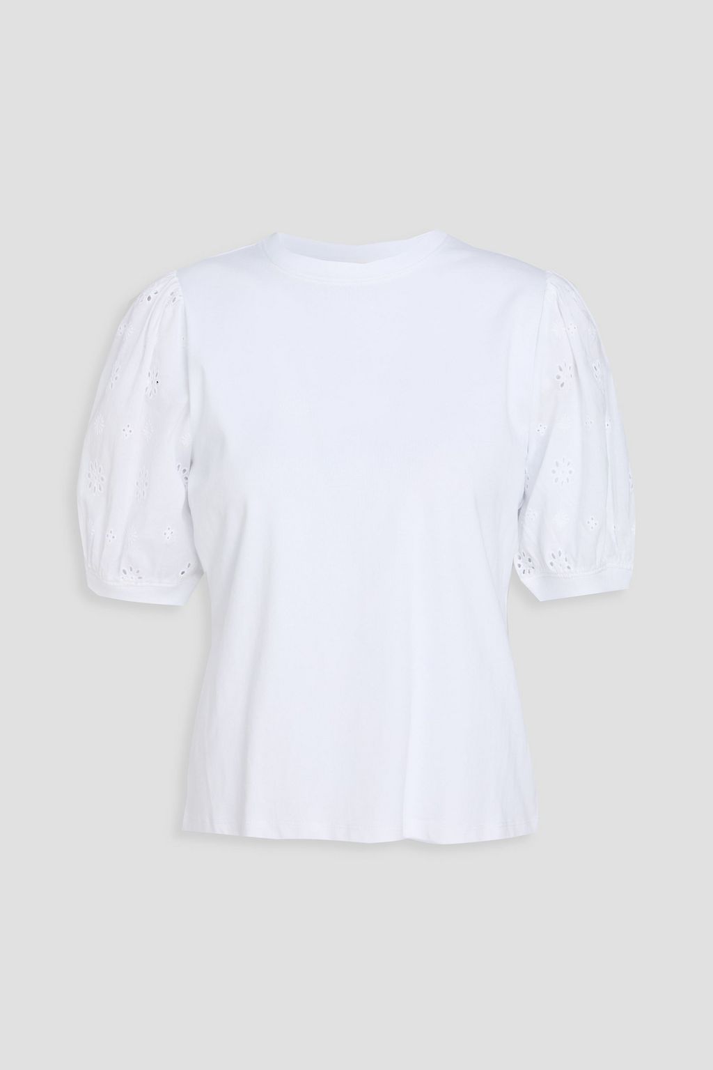 FRAME Broderie anglaise-paneled cotton-jersey top