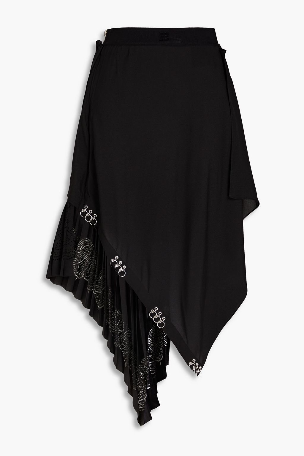 Pleated laser-cut crepe de chine midi skirt