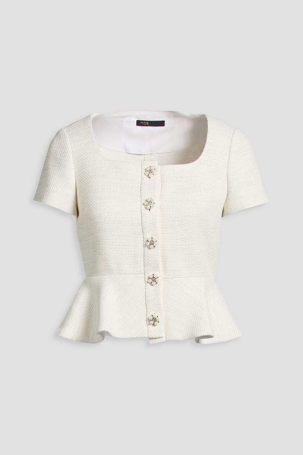 MAJE Metallic cotton-blend tweed peplum top
