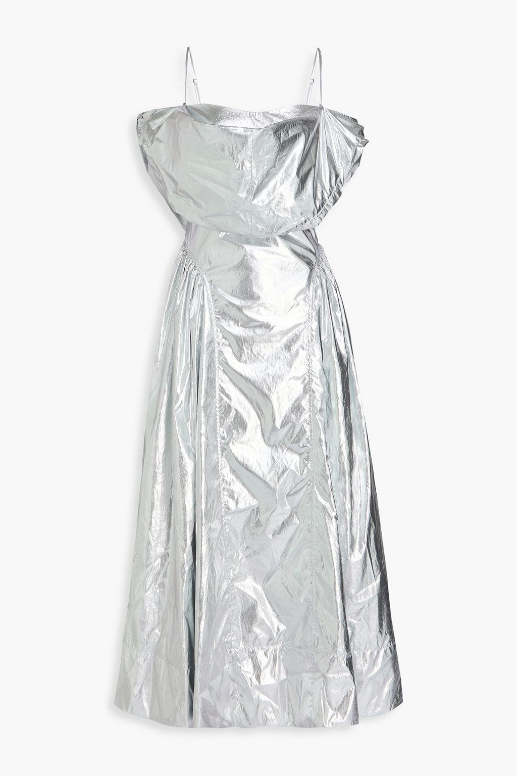 REJINA PYO Cold-shoulder gathered lamé midi dress