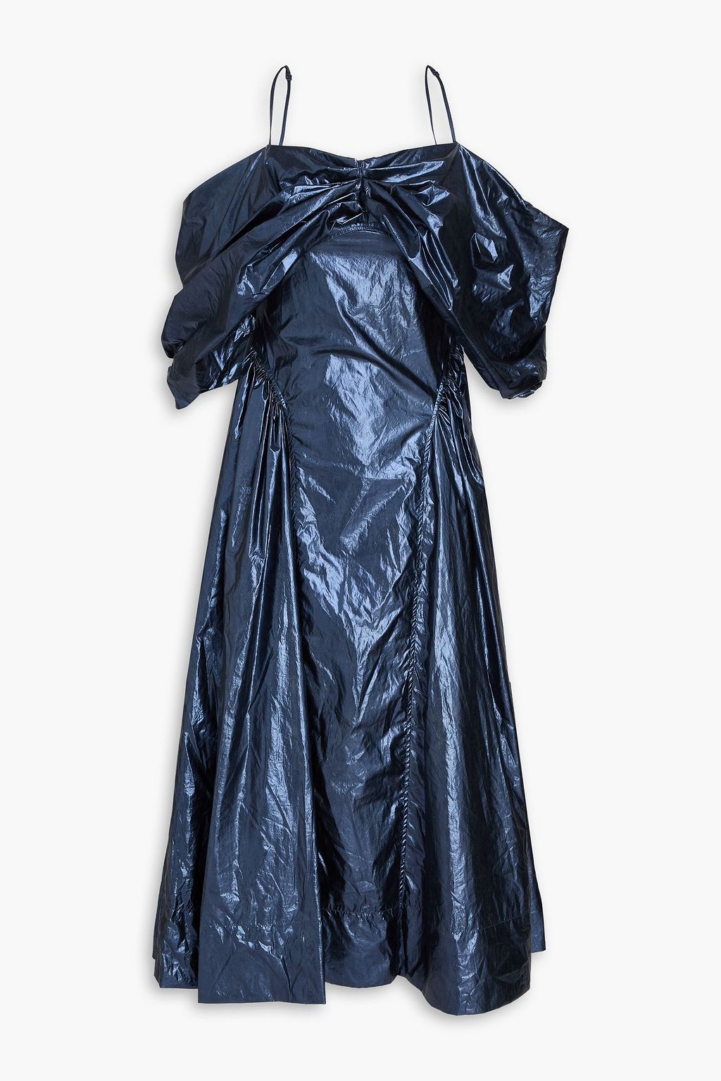 REJINA PYO Dora cold-shoulder lamé midi dress