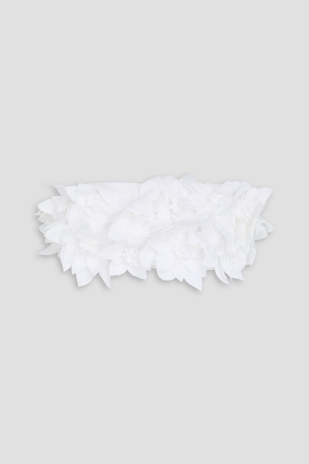 SIMKHAI Abril strapless cropped appliquéd cotton top