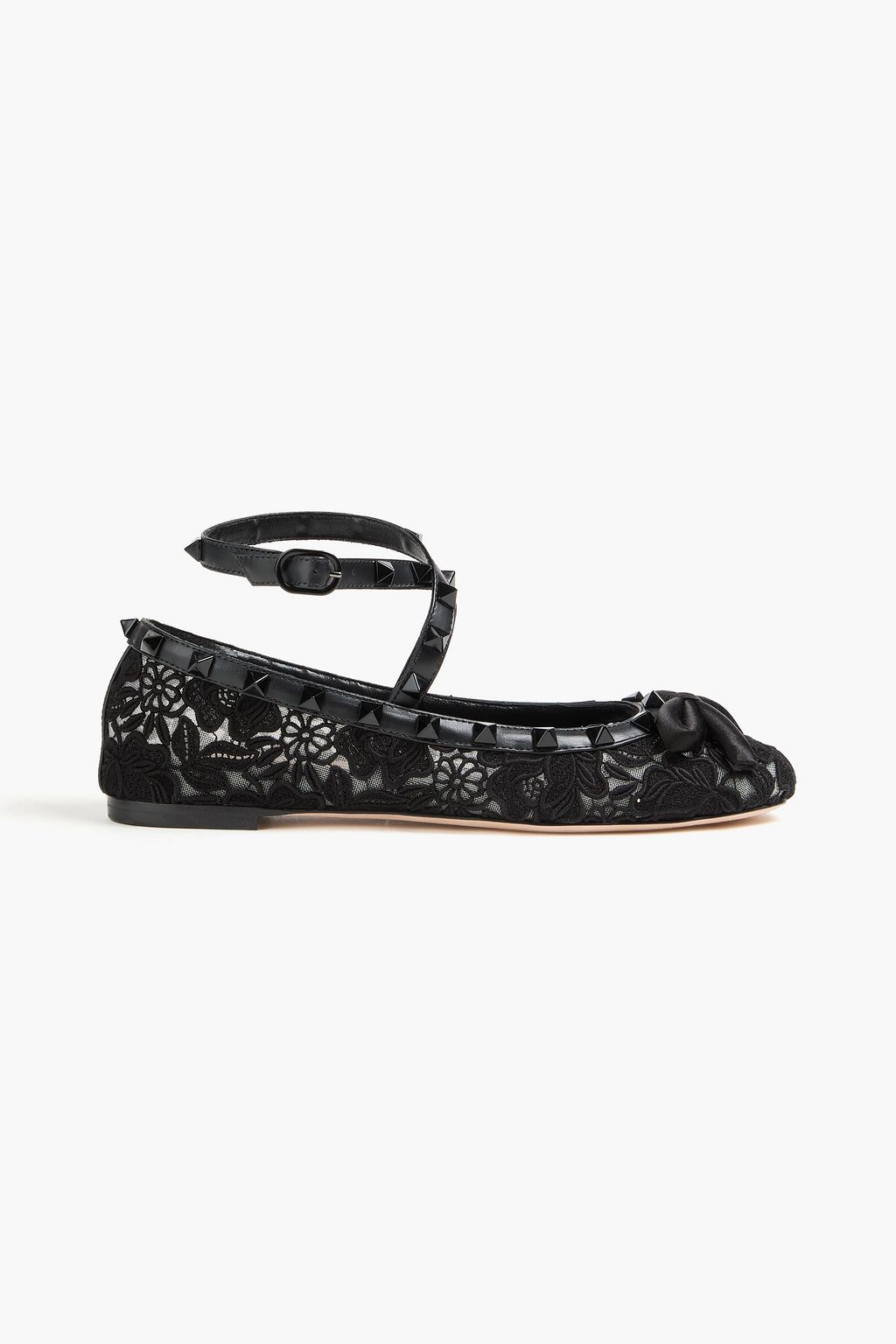 VALENTINO GARAVANI Rockstud bow-detailed lace ballet flats