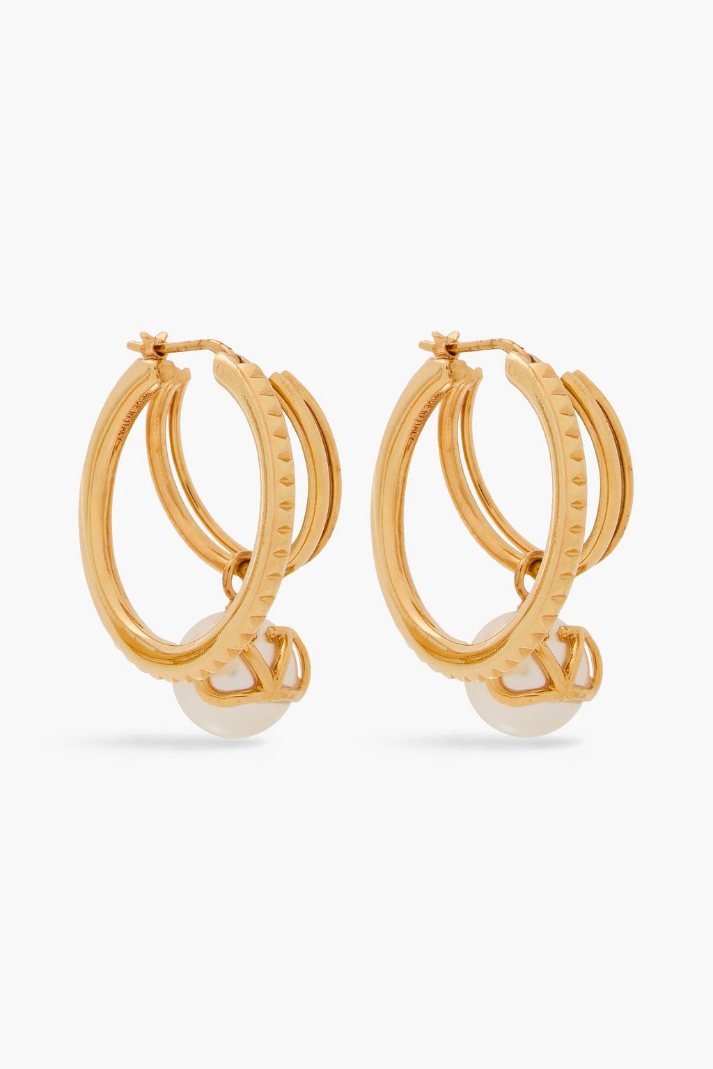 VALENTINO GARAVANI VLOGO Signature gold-tone faux pearl hoop earrings