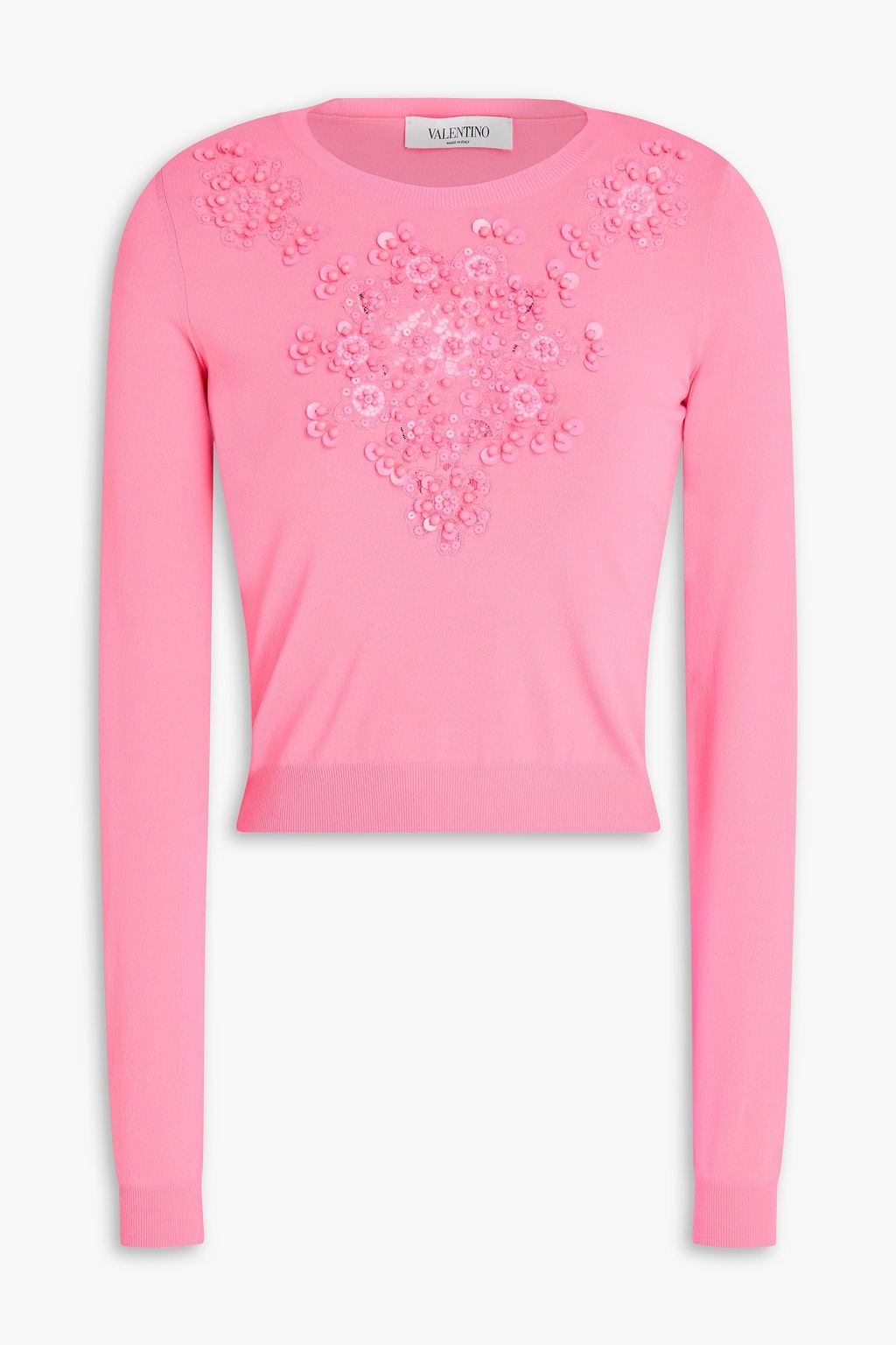 VALENTINO GARAVANI Cropped embellished knitted top