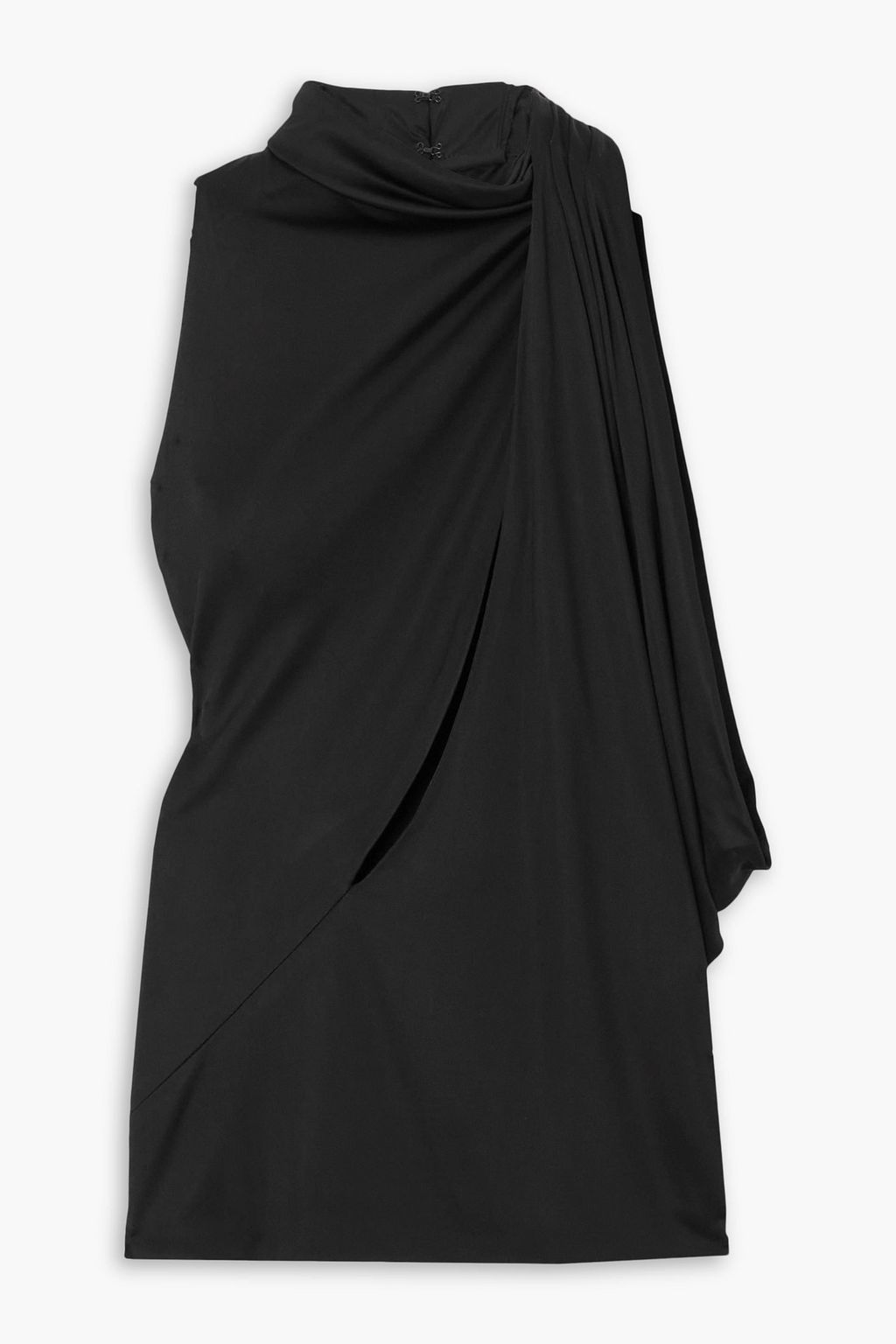 Versace's top is slashed across the front to bare a flash of skin. It's cut from black jersey and has a draped high neckline. Style yours with leather pants or a fitted pencil skirt.
