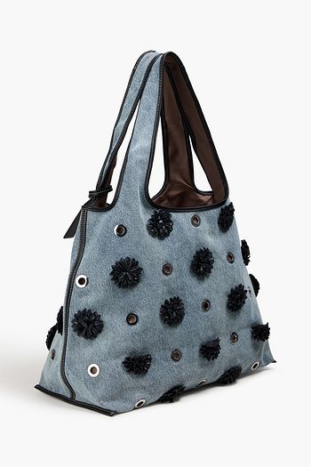 Eyelet-embellished denim tote