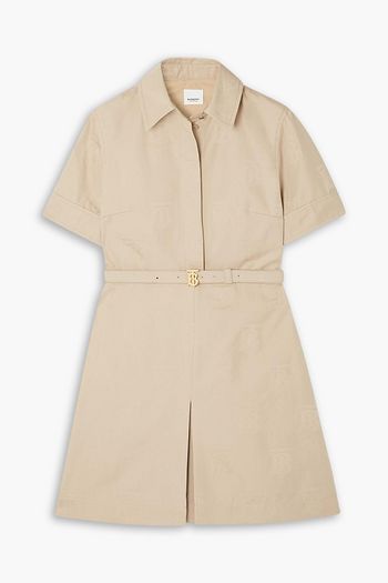 Belted cotton-jacquard mini shirt dress