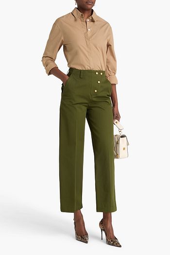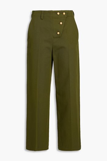 Bow-embellished wool and silk-blend crepe straight-leg pants
