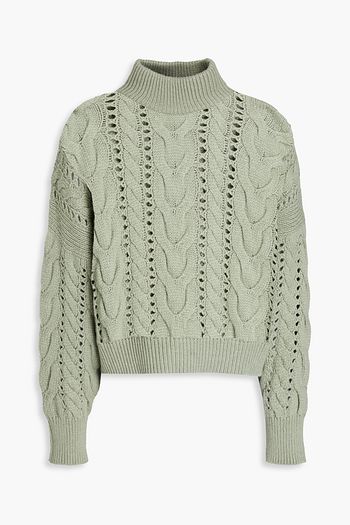 Cable-knit wool, cashmere and silk-blend turtleneck sweater
