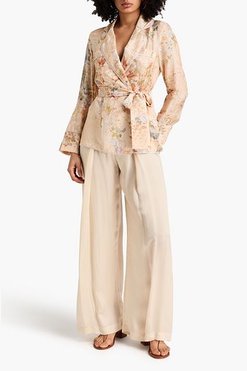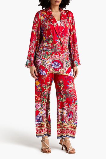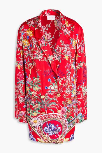 Double-breasted floral-print silk-satin blazer