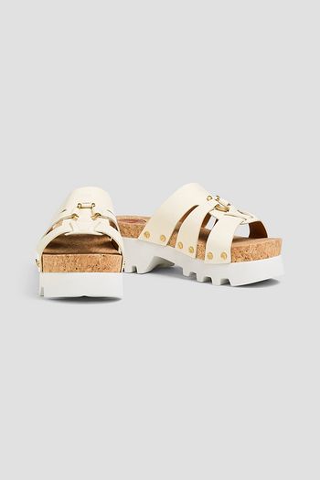 Embellished leather platform mules