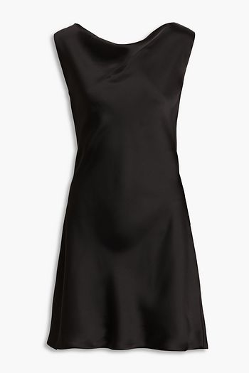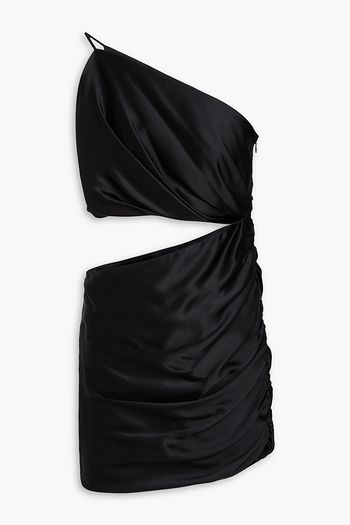 Ruched wool-blend satin mini shirt dress