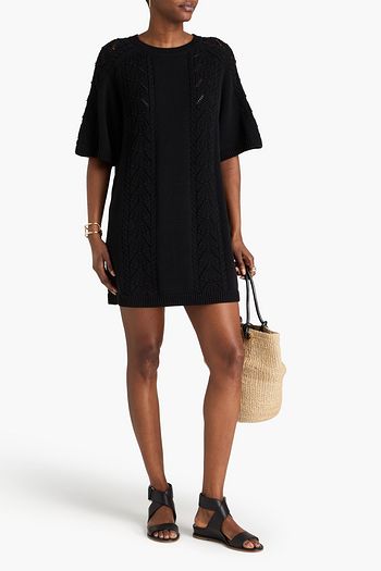 Crochet and stretch-knit mini dress