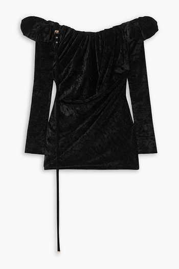Draped cotton-blend twill mini dress