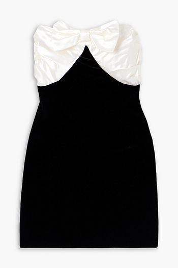 Strapless draped silk-blend satin and metallic tweed mini dress