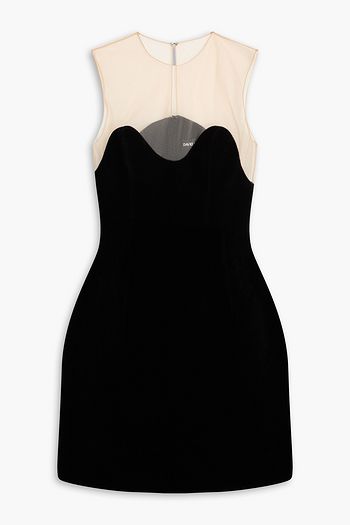 Velvet-paneled floral-print wool and silk-blend crepe mini dress