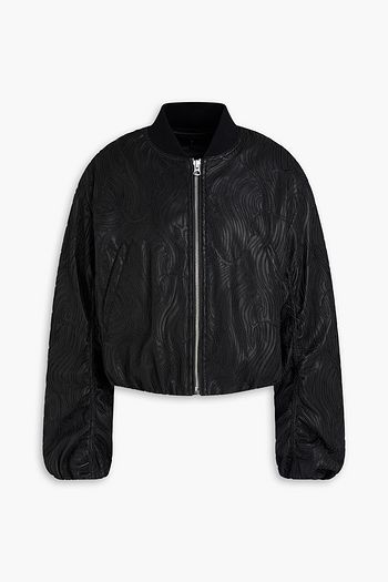 Plush-trimmed quilted stretch-shell bomber jacket