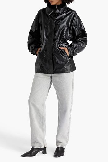 Teddy leather-trimmed teddy fleece jacket