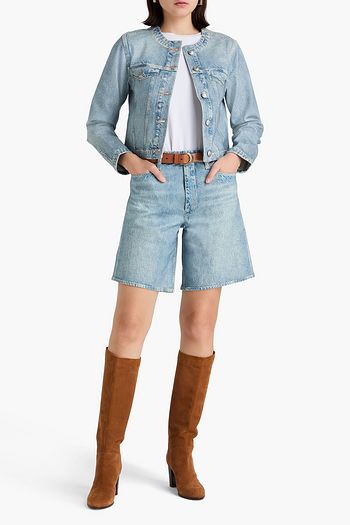 Cropped teddy fleece-trimmed padded cotton jacket