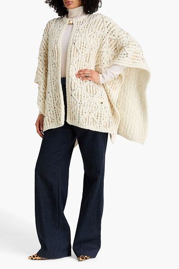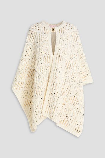 Fringed embellished knitted cape