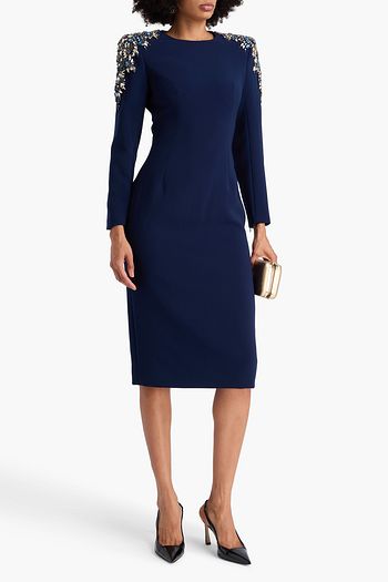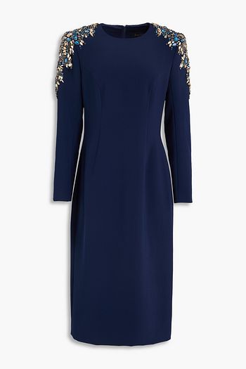 Tulip crystal-embellished tulle-paneled crepe midi dress