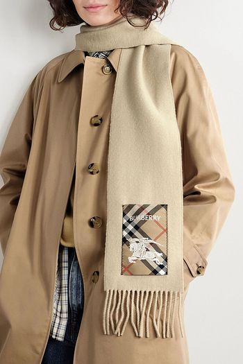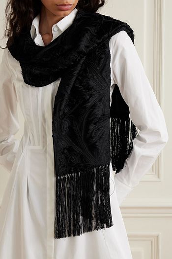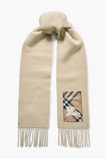 Fringed appliquéd cashmere scarf