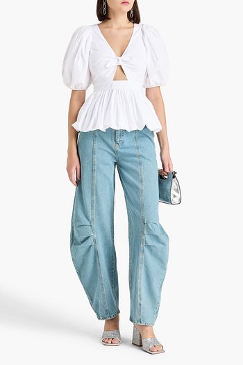 Cropped cotton-blend poplin wide-leg pants