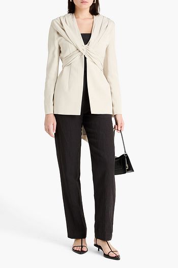 Jacquard-trimmed cotton and linen-blend wide-leg pants