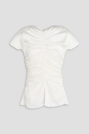 Rosie ruffled taffeta-trimmed printed stretch-jersey blouse