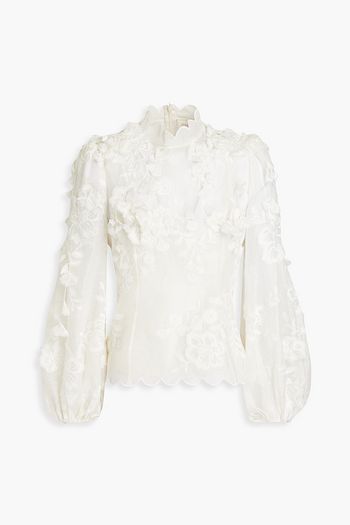 Embellished broderie anglaise linen and cady turtleneck blouse