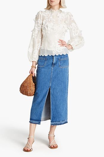 Embroidered linen-blend midi dress