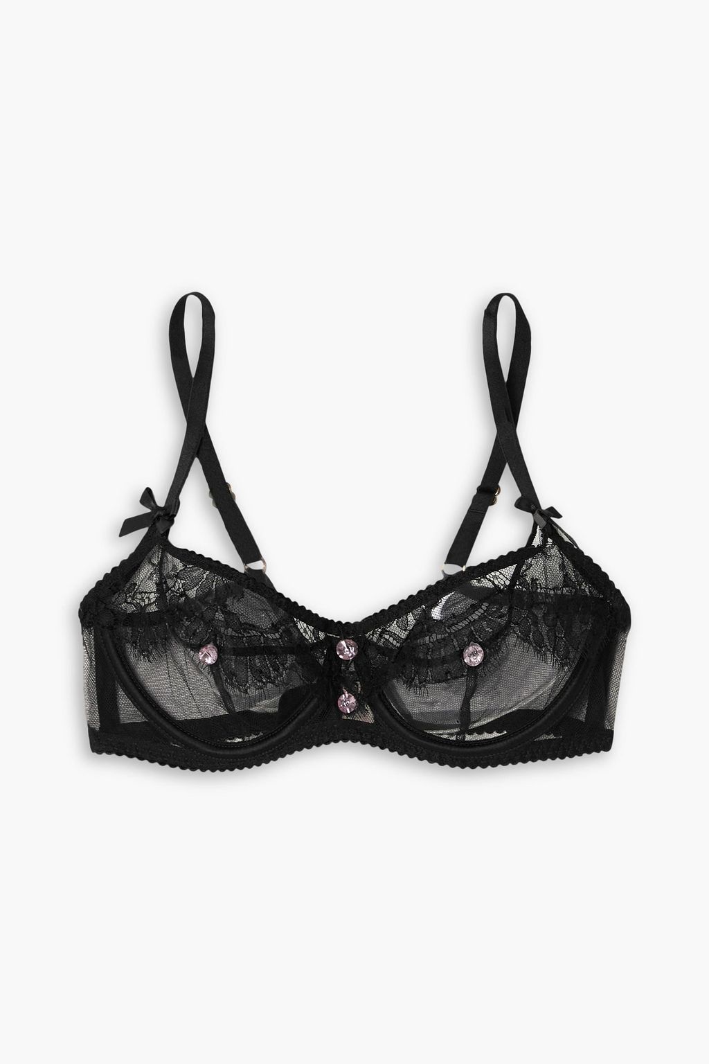 AGENT PROVOCATEUR Jaylin crystal-embellished Leavers lace and tulle underwired balconette bra
