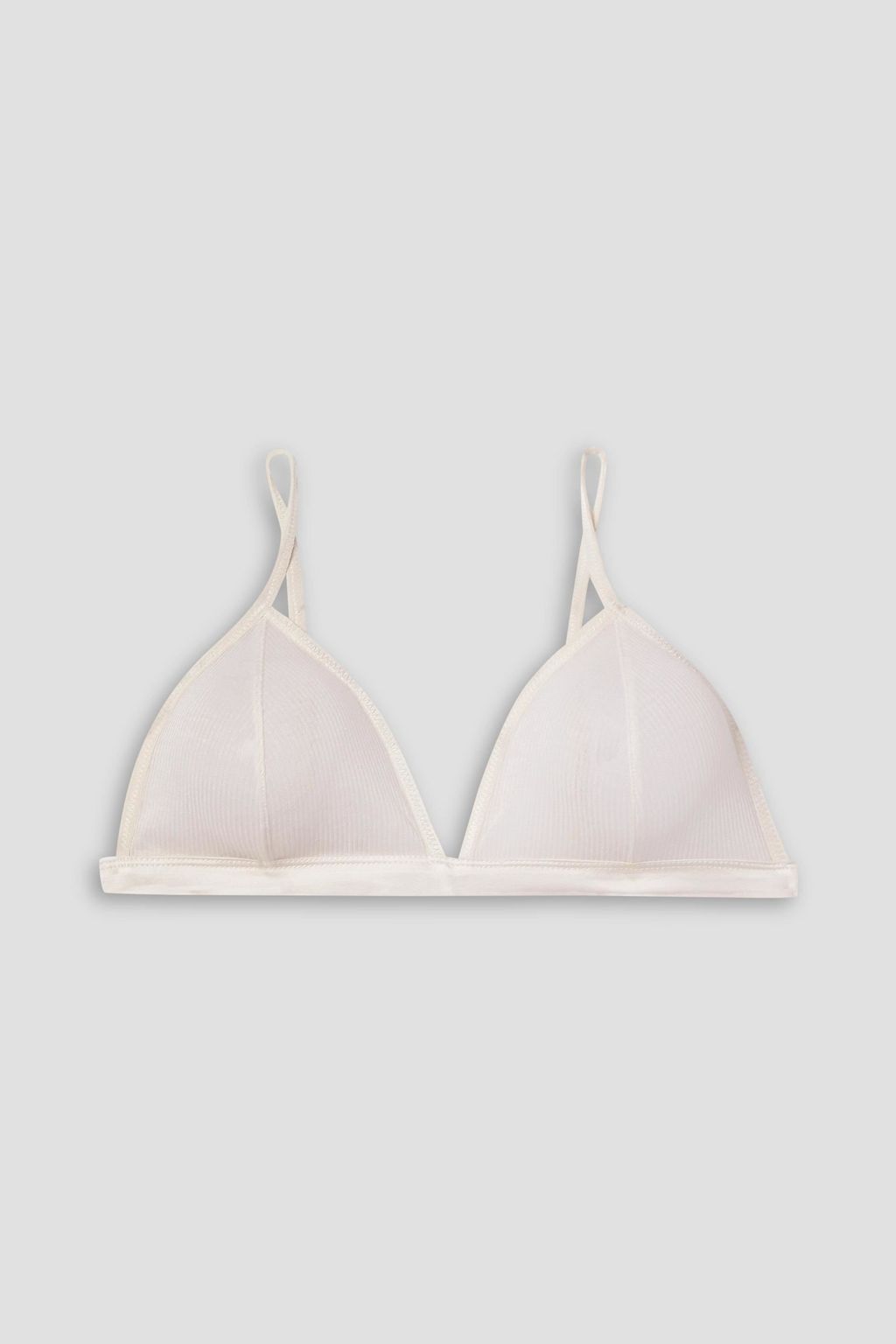 ANINE BING Alexia satin-trimmed ribbed-knit triangle bra
