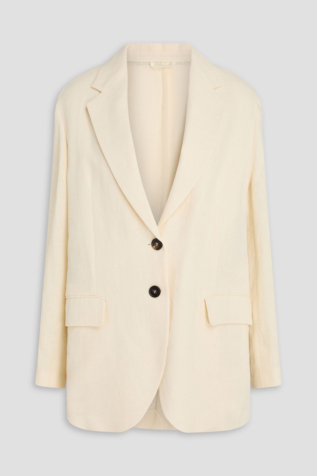 Make a refined entrance in Brunello Cucinelli’s linen blazer. It's tailored silhouette is so refined, especially in a soft neutral hue. Ideal for desk-to-dinner transitions; wear with a sleek cami and floaty midi skirt.