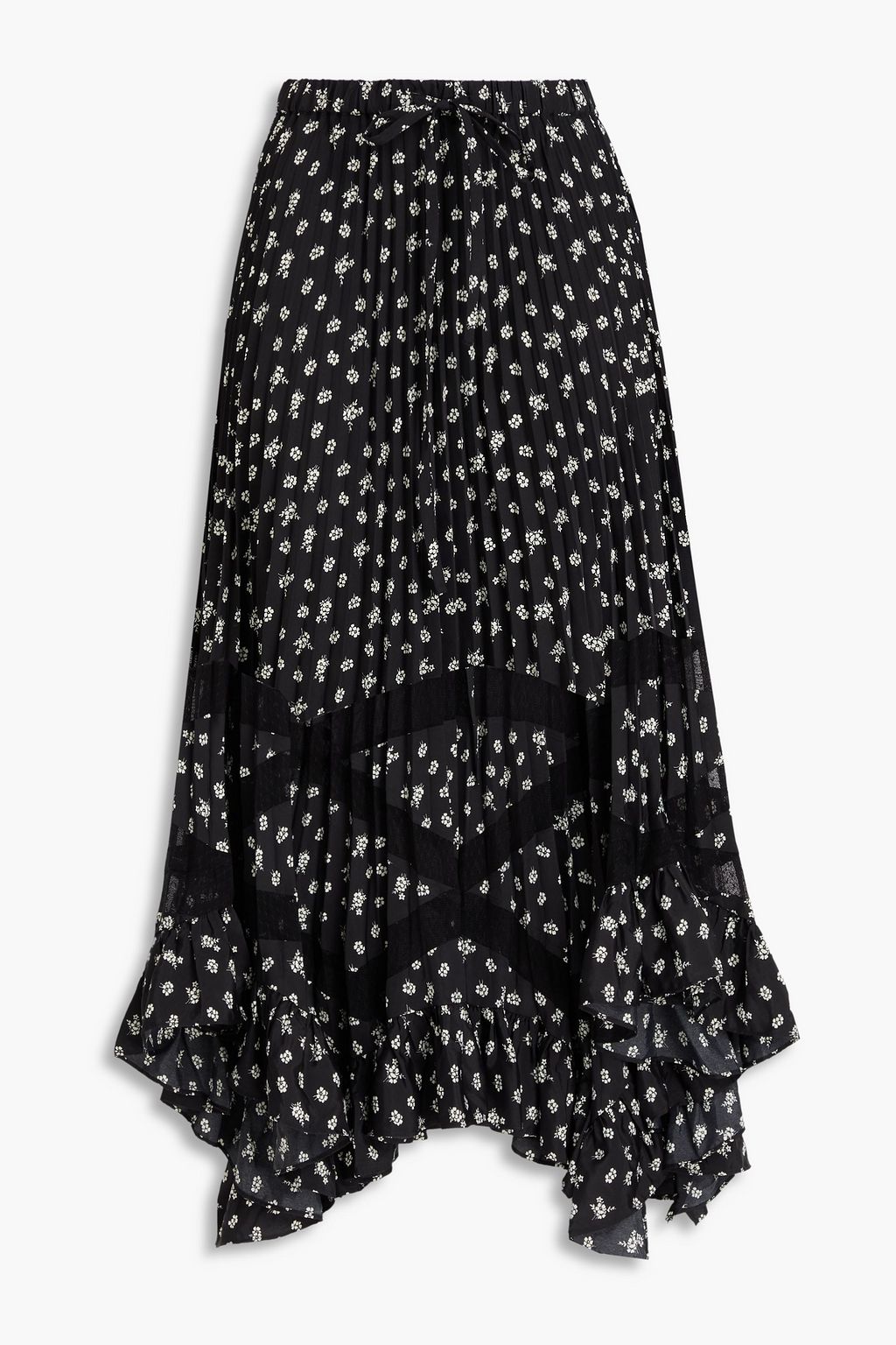 CLAUDIE PIERLOT Seloda floral-print crepe de chine and point d'esprit midi skirt