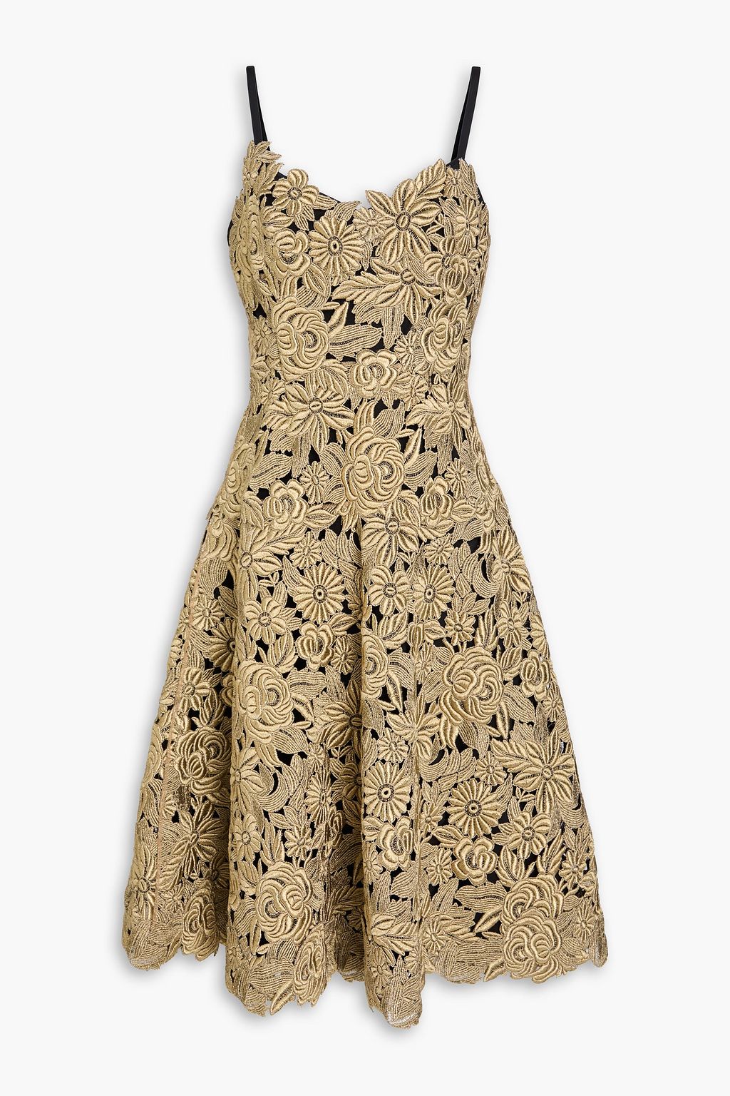 Go for gold with Valentino Garavani's dress. It's crafted from intricate guipure lace with a metallic finish. Wear it with mules and a clutch for a special night out.