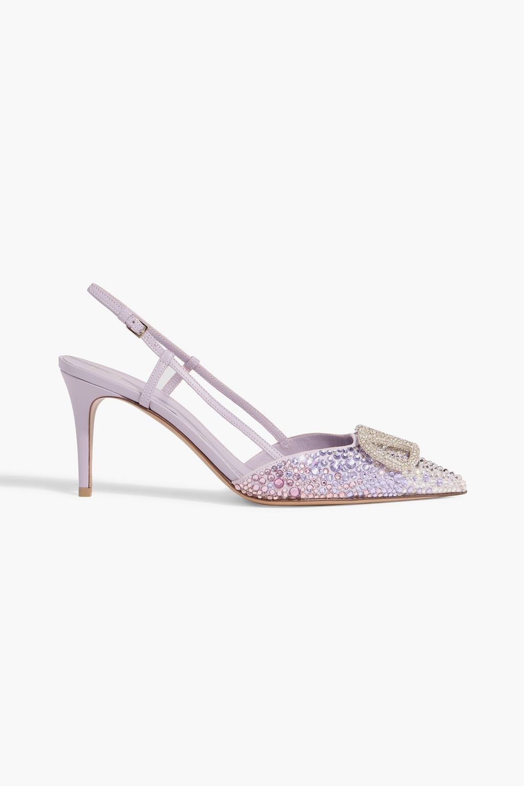 VALENTINO GARAVANI VLOGO crystal-embellished leather and suede slingback pumps