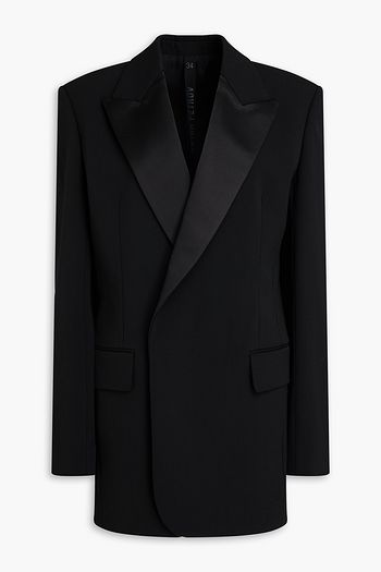 Asymmetric striped linen, cashmere and silk-blend sweater