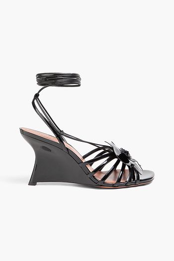 Crystal-embellished patent-leather sandals