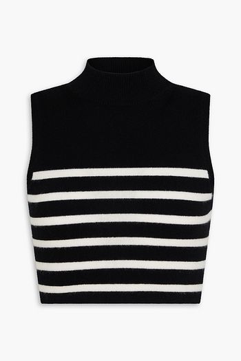 Bead-embellished striped wool, cashmere and silk-blend turtleneck sweater