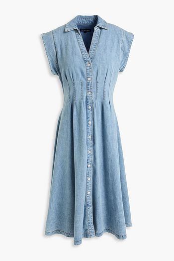 Ruffled printed denim midi dress