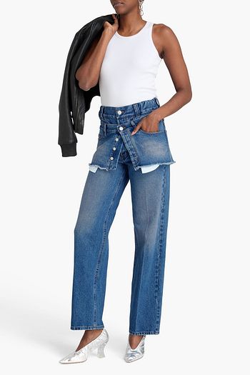Slit Hem embellished mesh-paneled high-rise straight-leg jeans