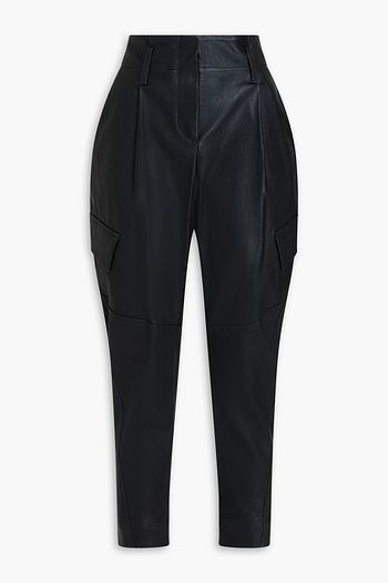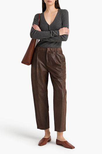 Pleated leather tapered pants