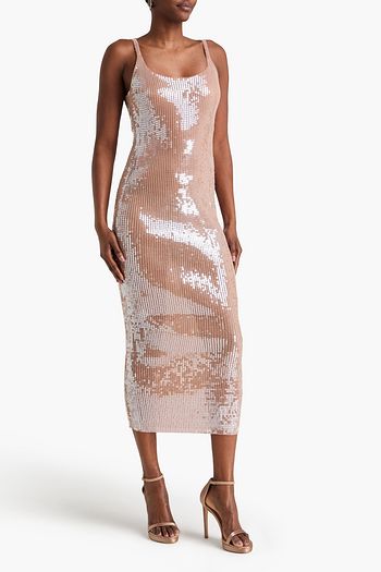 Sequined mesh midi dress