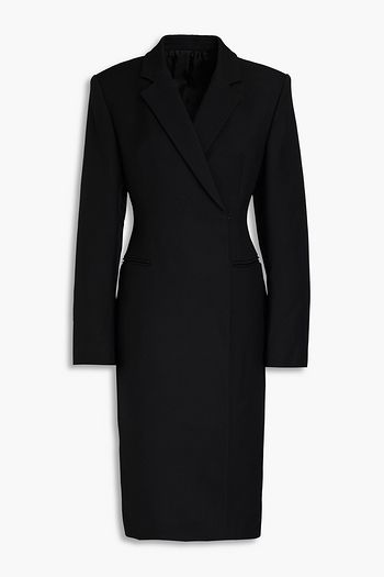 Archetypes leather-trimmed belted zebra-print denim trench coat
