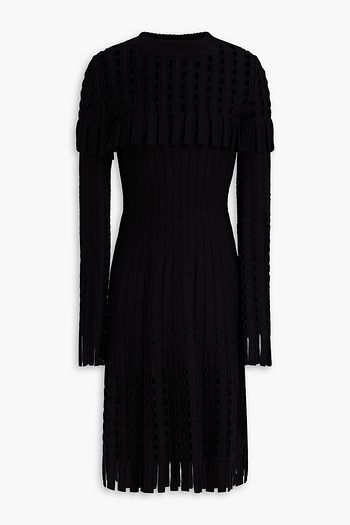 Fringed cutout wool-blend dress